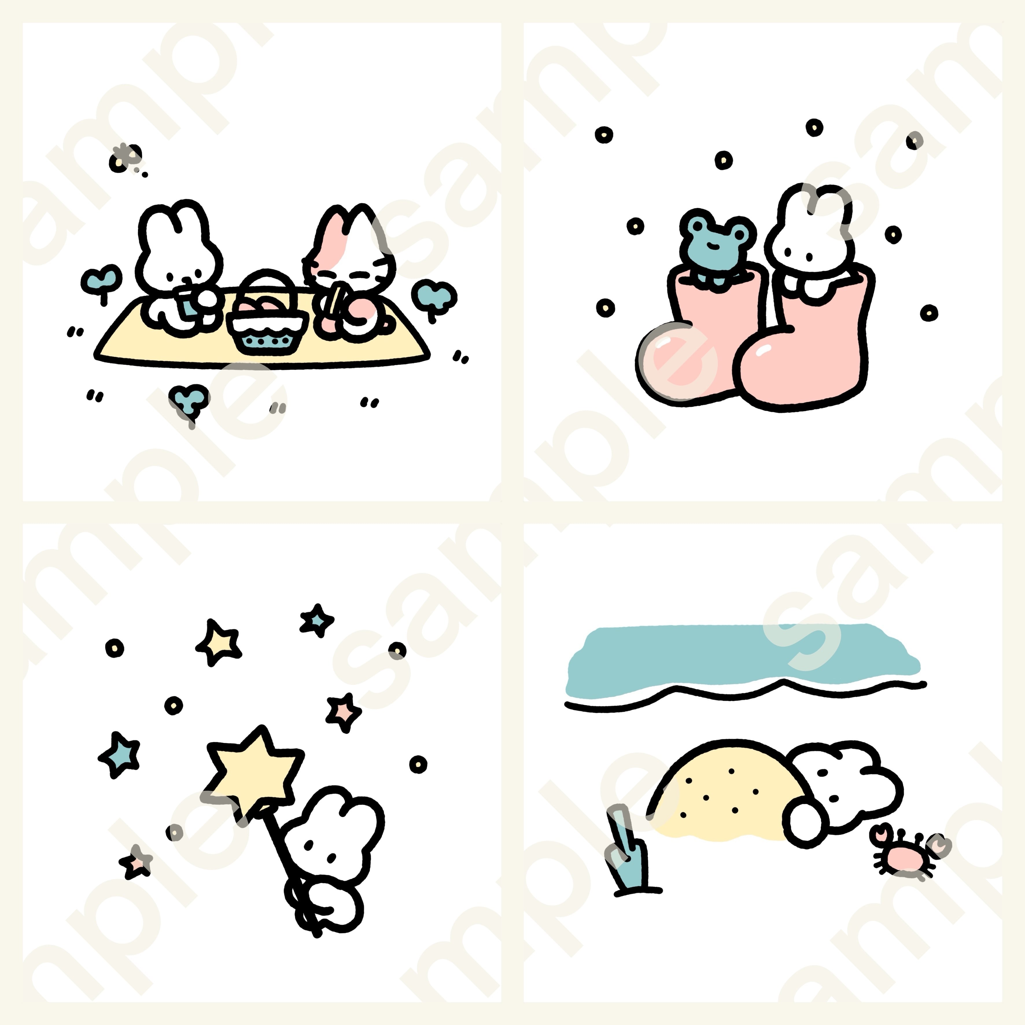 1年じゅう、楽しげなうさちゃんたちの様子を見て、ほんのりハピ〜な気持ちになっていただけると嬉しいです!